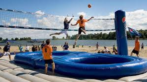 ·Bossaball es un juego de pelota entre dos equipos que combinan el fútbol con la gimnasia, el voleibol y la capoeira. Basado en las reglas del voleibol. La superficie de juego consiste en colchones hinchables y camas elásticas que permiten mayor número de toques y mucha mayor espectacularidad en los saltos. Los campos están divididos por una red.